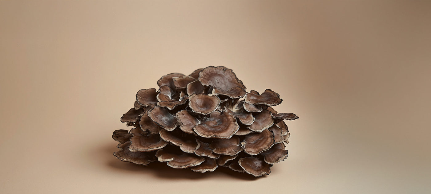 G. frondosa enthält Beta‑Glucane, deren Struktur komplexer ist als die der Beta‑Glucane in Getreide wie Hafer – ein Merkmal, das direkt mit ihrer Wirkung zusammenhängt. Zudem liefert der Pilz Provitamin D, Ergothionein und GABA. Zusammengefasst besitzt er ein ausgesprochen interessantes Nährstoffprofil und bemerkenswerte bioaktive Moleküle.