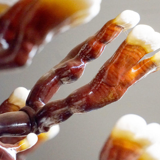 Unter optimalen Bedingungen bildet sie stielartige Ausläufer mit abgerundeten Enden, die an Geweihe erinnern – eine Form, die im alten China besonders geschätzt wurde.