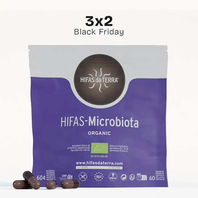 The HIFAS-Microbiota product contains the bioactive substances of the medicinal mushrooms Reishi, Lion's Mane, Pleurotus and Shiitake. Among them are ß-(1-3),(1-6) D-glucans and α-glucans, Triterpenoids, Ganoderic Acid, Linolenic Acid, Hericenones and Ergosterol (Vitamin D2 precursor).