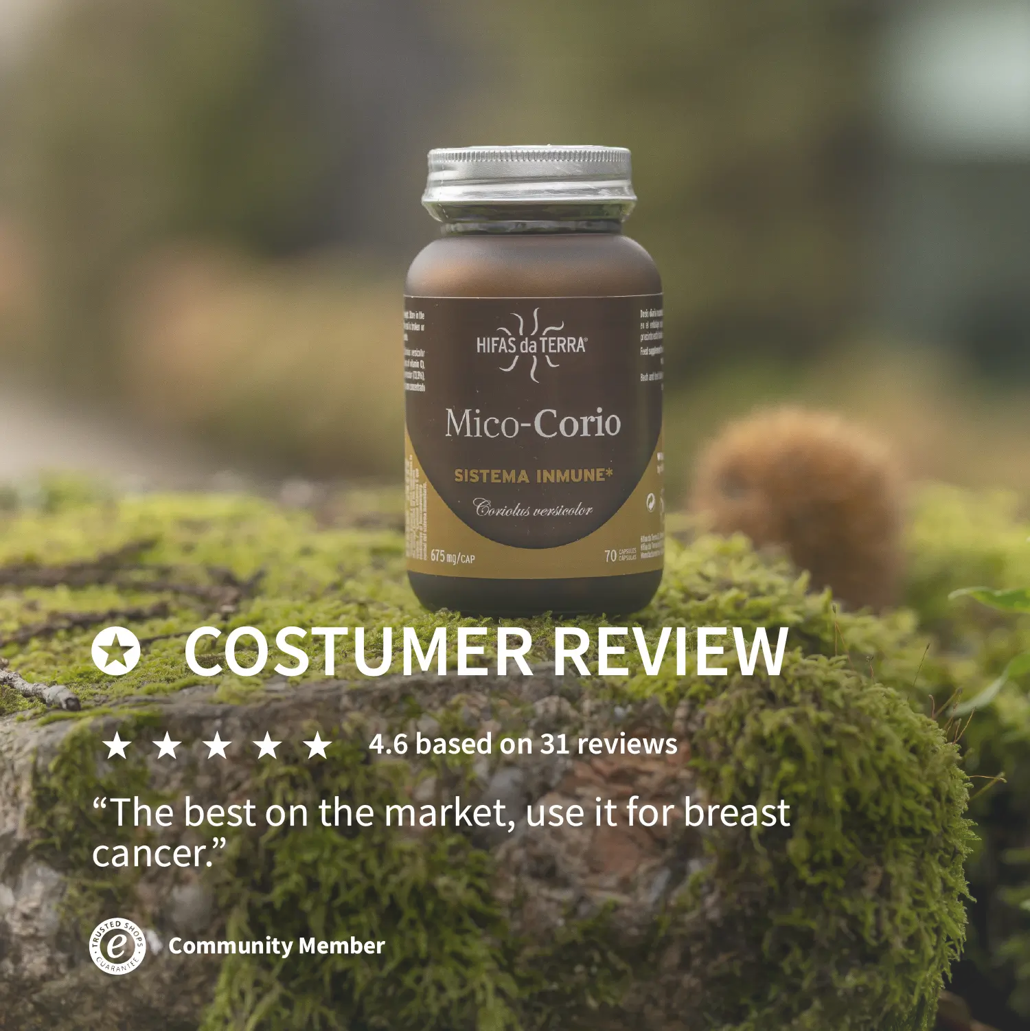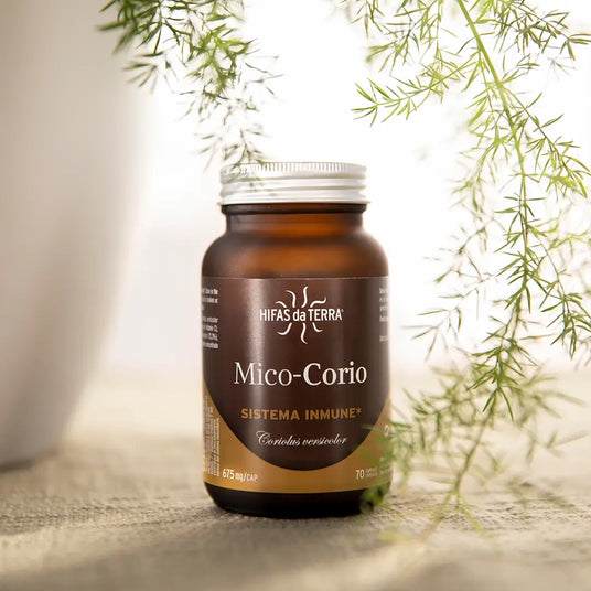 Formato: Vetro (70 capsule). Alimento complementare contenente 675 mg di estratto standardizzato puro di Coriolus versicolor Hifas da Terra, selezionato da ceppi unici con i migliori risultati analitici.