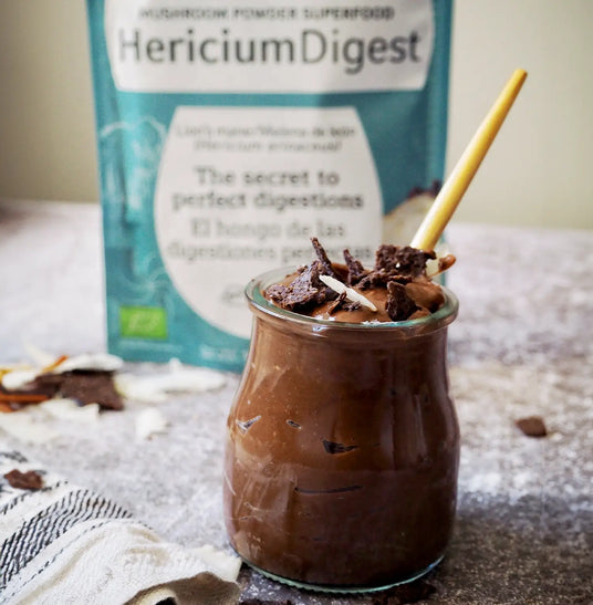 Mit Hericium Digest versorgen Sie Ihren Körper ganz einfach mit 100 % Bio-Pulver aus der Löwenmähne – dem Hericium erinaceus. Das Pulver lässt sich unkompliziert in Brühen, Suppen, Soßen, Säfte oder Smoothies einrühren – und unterstützt die Darm-Hirn-Achse auf natürliche Weise. Die Löwenmähne ist ein Pilz, der auf Bäumen der nördlichen Hemisphäre wächst und reich an Ballaststoffen (Beta-Glucanen) ist. In Nordamerika und China wird er seit Langem zur Förderung der Verdauung eingesetzt. Aktuelle Forschung untersucht seine Wirkung auf die Darmgesundheit.