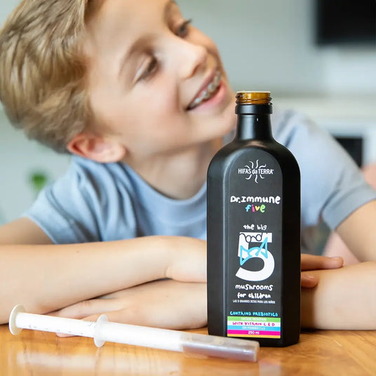 Dank seines angenehmen Geschmacks (süß mit einer frischen Zitrusnote) und der hochwertigen Formel aus Reishi und weiteren Vitalpilzen, Probiotika sowie Vitamin C und D, ist der natürliche Kindersirup Dr. Immune Five die ideale Lösung zur Stärkung der Abwehrkräfte von Kindern ab 3 Jahren.