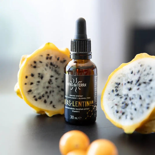 Das innovative nutrazeutische Premiumprodukt Lentinan enthält Lentizumib®, ein hochwertiger Lentinan – eine aktive, konzentrierte, leistungsstarke und gut lösliche Form eines Beta-Glucans. Die Formel wird durch Vitamin C ergänzt, das zur normalen Funktion des Immunsystems beiträgt und die Bioverfügbarkeit von Lentizumib® verbessert.